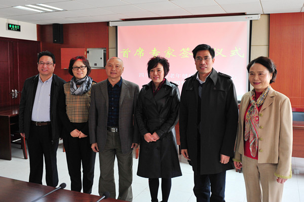 第一阶段,首席专家聘任协议签字仪式。成都医学院副校长、中心主任唐平分别与四川大学华西医院老年科主任董碧蓉,四川省社科院社会研究所所长黄进,四川省护理职业技术学院院长张先庚,成都医学院四川省应用心理学研究中心主任罗跃嘉签订了首席专家聘任合同,聘请以上四位专家作为我校四川养老与老年健康协同创新中心的首席专家。随后,余小平书记、樊均明校长分别为四位专家颁发了聘书。余小平书记表示欢迎四位专家成为我校四川养老与老年健康协同创新中心的首席专家,希望今后双方合作愉快,共同为我校四川养老与老年健康协同创新中心的科学研究发展建言献策,为进一步推进和深化中心“五位一体发展”战略贡献力量。同时,樊均明校长指出我校将以四川养老与老年健康协同创新中心建设为抓手,开展“双一流”工作,首席专家们的加入将会为四川养老协同创新中心和成都医学院的发展注入强大的学术科研力量和智慧资本。